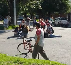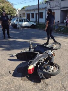 Un auto y una moto en la que presuntamente viajaban 3 personas chocaron este sábado en horas de la tarde en la esquina de Salta y Brown, a donde varios vecinos se acercaron a colaborar con los heridos.