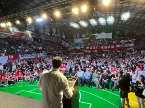 “Nos alienta un objetivo que no puede esperar ni un minuto más: necesitamos, una provincia que sea viable, que sea vivible, que se desarrolle y que lidere la recuperación que tanto necesitamos”, dijo ante unas 5.000 personas llenaron el estadio de banderas rojas y blancas.