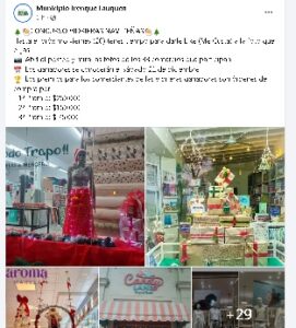 Las fotografías de las vidrieras de los comercios ya están subidas en el Facebook del Municipio y los vecinos/as pueden votar poniendo Like (me Gusta) en la foto que elijan. Se puede ingresar al Facebook a través del siguiente Link: http://bit.ly/3Bz01a2