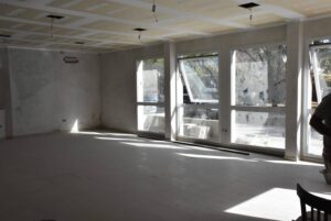 En el sector del buffet ya se instalaron las mesadas, lo que permitió comenzar con el revestimiento y, próximamente, se iniciarán las tareas de pintura interior.