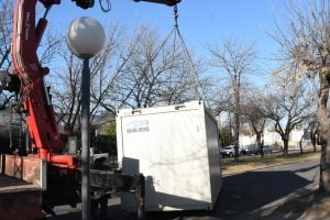 Para su instalación y teniendo en cuenta el tamaño de ambos contenedores estaba previsto que personal de la Cooperativa de Electricidad realizara un corte provisorio de la línea de media tensión para evitar riesgos.
