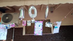 Su centenario la encuentra con plena lucidez, y ya la calle Monferrand, entre 9 de Julio y Uriburu, frente a su vivienda, se halla en un anticipado festejo con la colocación de globos y fotografías que van señalando su trayectoria, previo a la misa que se oficiará a las 20 horas, para celebrar el placentero acontecimiento, en compañía de familiares, vecinos, y amigos.
