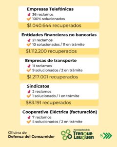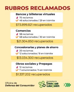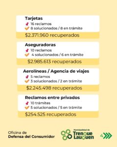 Como resultado de las gestiones realizadas, se logró un recupero económico total que supera los 120 millones de pesos, en beneficio directo de los consumidores.
