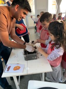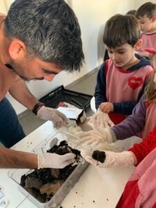 Uno de los momentos más destacados fue la presentación de un lombricario, un sistema que permite observar cómo las lombrices descomponen la materia orgánica para transformarla en humus, un abono natural de alta calidad. Los chicos/as pudieron ver de cerca este proceso y hacer preguntas, fomentando su curiosidad y compromiso ambiental.
