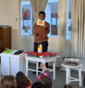 El Jardín Corazón fue sede de una actividad educativa centrada en el cuidado del ambiente, que estuvo a cargo del director de Ambiente y Desarrollo Sustentable del municipio, Facundo Splendiani, quien, a través de juegos didácticos, promovió entre los niños/as el aprendizaje sobre cómo separar correctamente los residuos, cómo reciclar y qué es el compostaje.
