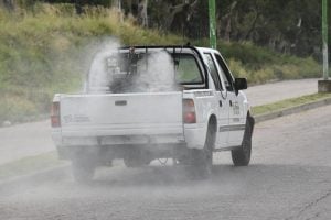 El Municipio viene realizando la fumigación tal como está permitida, de manera terrestre con uno de vehículos y empleando un producto que se denomina comercialmente Depe, y que está autorizado por el ministerio de Salud de la Nación, no produce irritación y es de bajo olor.