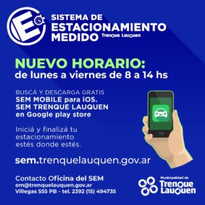 Por cualquier consulta, acercarse hasta la oficina del SEM, ubicada en la Planta Baja del Centro Cívico (Villegas y Oro) o comunicarse por teléfono al (2392) 15 – 494735 o WhatsApp al (2392) 49 – 4735.