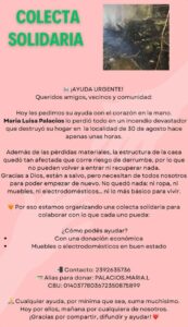 Ante esta situación, familiares, amigos y vecinos organizaron una colecta solidaria. Se están recibiendo donaciones de dinero, muebles y electrodomésticos en buen estado para ayudar a la familia a volver a empezar.