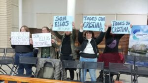 La sesión fue acompañada con carteles en las 4 bancas de los ediles del FDT con la leyenda “Todxs con Cristina”. Y los dirigentes justicialista que siguieron sesión llevaron cartelería con frases como “No vienen por Cristina, vienen por la democracia” o “Todes con Cristina” o “Son ellos, López-Caputo”.
