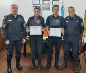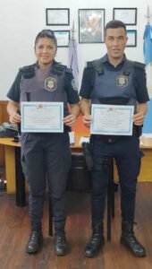 La “Unión de Asociaciones Sanmartinianas” distinguió con un Diploma de Honor a los efectivos policiales de la Comisaría Primera de Trenque Lauquen, Subteniente ANDRES DANIEL URIARTE y Oficial EVANGELINA NAIR ERRO, “con motivo a que el día 10 de Septiembre del corriente año le realizaron “maniobras de resucitación –R.C.P. – a un hombre que acababa de sufrir un infarto en la puerta de su vivienda en un barrio de esta ciudad, en momentos en que ellos pasaban patrullando por el sector, y gracias a esa acción lograron salvarle la vida a esta persona”.