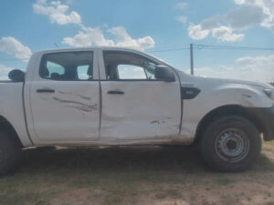 El otro siniestro tuvo lugar un rato antes, en las afueras de la ciudad, en la esquina de Monferrand y Carabelli, a metros de la ruta nacional N° 5, entre una camioneta Ford blanca y una moto Honda Dax.