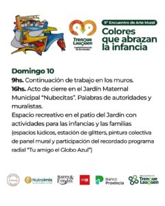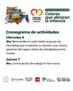 . Miércoles 6: inicio del Encuentro a las 9 hs. En cada Jardín, los muralistas presentarán el boceto a cada comunidad educativa.