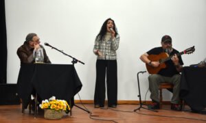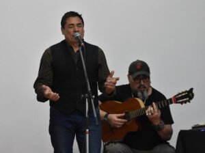 La presentación de Hernán Sotullo tuvo su momento musical con el músico Orlando Moro, que acompañó con su guitarra las celebradas voces de Alejandro Millache y Analía Orbegozo.