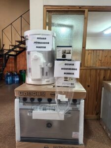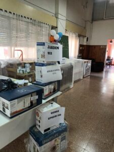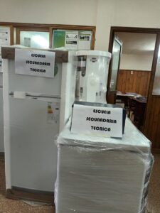 Se realizó a partir de un relevamiento que se hizo en el mes de marzo donde cada institución manifestó lo que consideraba necesario para su establecimiento: heladeras con freezer, procesadoras, batidoras, mini pimer, termotanques, cocina industrial, frezzer y hornos pizzeros. También se entregaron cofias y delantales para cocineros y ayudantes de cocina.