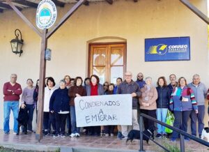 El Correo tiene 1.450 sucursales y 900 inmuebles propios. Pero ya son numerosas las localidades donde sus trabajadores y los vecinos comenzaron a protestar por el cierre de ellas. Una de las mismas es la señalada Santa Regina, donde algunos pobladores se fotografiaron con el único empleado del Correo y una bandera que expresaba “Condenados a Emigrar”.