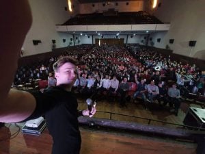 Mateo Salvatto dio una charla sobre cómo todos los chicos que tengan iniciativas pueden desarrollarse y cambiar las realidades. Participaron alumnos de los tres últimos años del secundario