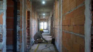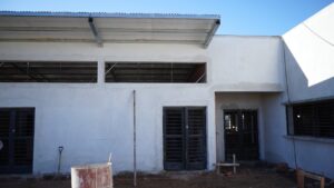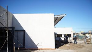 La obra del Centro Comunitario de Salud Mental y Consumos Problemáticos avanza a buen ritmo: el edificio ya se encuentra techado en su totalidad, se están terminando de revocar los exteriores y se trabaja en las instalaciones de agua, cloacas y electricidad.