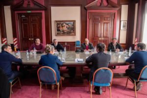 Del encuentro en la Casa de Gobierno, en la ciudad de La Plata, también participaron la ministra de Gobierno, Cristina Álvarez Rodríguez; el ministro de Economía, Pablo López; y el vicejefe de Gabinete, Juan Pablo De Jesús, y se desarrolló en un clima cordial entendiendo ambas partes la complejidad del momento, marcada por la incertidumbre e inestabilidad global y local, y atentos a la necesidad de lograr acuerdos cooperativos.