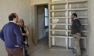 En este momento se están levantando paredes en el sector más bajo del edificio, reparando las molduras en el exterior y terminando los revoques finos en el interior. Además, se están armando bibliotecas en tres (3) espacios y el cielorraso en el hall de entrada.