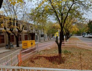 En un primer momento, desde muy temprano en la mañana, se procedió a vallar y asegurar el lugar, y también a cortar la copa del árbol ubicado en el pozo que se abrió en la rambla a fin de evitar inconvenientes y para que no exista peligro para los ocasionales transeúntes.