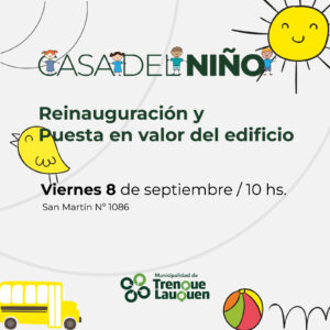 La municipalidad de Trenque Lauquen realizará el próximo viernes (8) a las 10:00 el acto de reinauguración y puesta en valor de la Casa del Niño, que funciona en San Martín nº 1086.