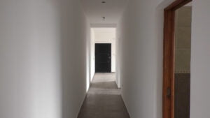 La casa tiene dos habitaciones, una más grande y adaptada, con muchas tomas de electricidad para el equipamiento que utiliza la persona que va a vivir, y con acceso directo desde el exterior, y un pasillo ancho.
