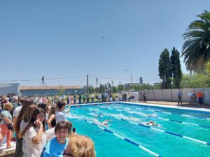 Tras el tradicional corte de cintas, los presentes pudieron disfrutar de una muestra que un grupo de adolescentes y adultas/os del CEF nº 18 realizaron en la nueva pileta, bajo la coordinación de la profesora Martina Lafrosia.
