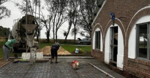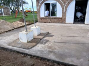 Además, se quitaron las veredas exteriores existentes y se realizó un contrapiso de hormigón armado elaborado. Las tareas continuarán los próximos días siguiendo el plan de obra.