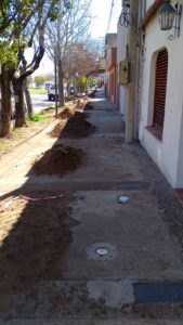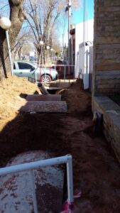 En calle Quintana, entre Mitre y Alsina ya se realizó el recambio de las cañerías, están hechas las conexiones y falta hacer la compactación del suelo esperando completar los trabajos esta semana.