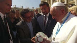 La pelota llegó a manos del sumo pontífice a través de Marcin Schmidt, miembro de la Orden de Malta y presidente de Cáritas de Polonia, quien visitó el lugar en agosto pasado y la recibió de manos del párroco de la diócesis vecina de 9 de Julio, Guillermo Gómez.