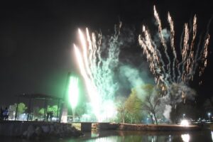 Asimismo, desde mucho antes de los shows, las gradas del Anfiteatro comenzaron a completarse de jóvenes y no tan jóvenes que disfrutaron de la propuesta de Valentino Merlo, La Kuppe y Luck Ra. Antes del cierre musical, el Intendente Miguel Fernández y María de los Ángeles Borzone, la esposa del ex Intendente Jorge Barracchia, dejaron inaugurado el nuevo Puente, un ícono del Parque Municipal, el Mirador y también la Fuente ornamental. Ya cuando parecía que no podía haber más sorpresas, llegó otro de los momentos especiales de la noche: los fuegos artificiales que inundaron de color el cielo iluminando la laguna y los distintos sectores del Parque.
