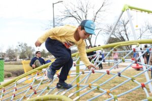 En medio de una marea de familias que buscaban ingresar a este nuevo espacio del Parque, se realizó el descubrimiento de una placa simbólica que dejó plasmado este momento y que dice lo siguiente: Inauguración de la Isla de los juegos. “Quiero tiempo, pero tiempo no apurado, tiempo de jugar que es el mejor…”. María Elena Walsh. Dr. Miguel A. Fernández/Intendente-Municipalidad de Trenque Lauquen. 23 de septiembre de 2023.