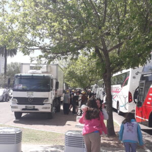 Poco después del mediodía, al sonar de las bocinas, arribó a la ciudad la caravana de una docena de micros que trasladó a más de medio millar de fieles católicos que participaron de la anual peregrinación desde Liniers a la Basílica de Luján, un trayecto de unos 60 kilómetros, que esta vez debió ser interrumpido a la altura de General Rodríguez, ya en su tramo final, como consecuencia de una fuerte tormenta eléctrica, y una lluvia torrencial.