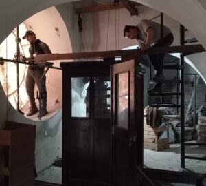 Se aprovechó, asimismo, para efectuar un trabajo de limpieza completo de la totalidad de la máquina, mediante el uso de kerosene, acompañado de una lubricación de cada una de las piezas, más un cerramiento de la cabina original para evitar que ingrese polvillo, y otras partículas que afecten el futuro movimiento del reloj. Requerirá, al mismo tiempo, en el futuro, de un frecuente mantenimiento para asegurar su funcionamiento correcto.