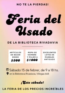 La Biblioteca Rivadavia organiza el próximo sábado 15 de febrero la primera Feria del Usado del año, entre las 9 y las 18 hs.