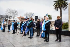“Más allá de su gesta libertadora, San Martín, el Libertador de América y ‘Padre de la Patria’, fue una pieza fundamental en la construcción de la independencia; y por esa causa ofrendó su vida y rindió su espada, de ahí su extraordinaria grandeza”, dijo el locutor en el inicio del acto, que fue presidido por las banderas de ceremonia de la Escuela Municipal, y que contó con el acompañamiento de las banderas de Bomberos Voluntarios, de Policía y del grupo Scout Conrado Villegas.