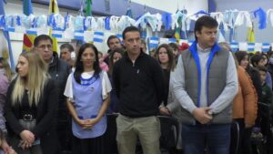 También estuvieron presentes el secretario de Gobierno del Municipio, Gustavo Marchabalo; el secretario de Gestión y Planificación, Martín Borrazás; el director de Cultura y Educación, Guillermo Ruiz; la coordinadora de Jardines Maternales, Yanina Luján; autoridades policiales, Bomberos, representantes de instituciones intermedias, alumnos, docentes, auxiliares de educación, padres y vecinos/as.