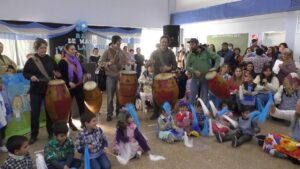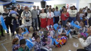 Docentes, padres, madres y chicos/as le dieron una calidez y color especial al acto realizando danzas tradicionales de la época colonial y actuales en el marco del proyecto educativo en el que estuvieron trabajando. Y participaron, además, integrantes de Cardo Ruso, una agrupación local de candombe.