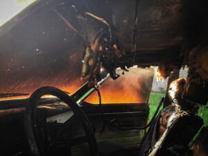 Los Bomberos Voluntarios de Trenque Lauquen concurrieron este domingo a las 7:05 a un incendio de un vehículo estacionado en la vía pública en en 9 de Julio y Carmen Granada.