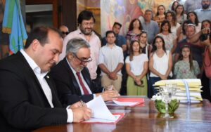 Posteriormente, el intendente saliente, Miguel Fernández, y el intendente electo, Francisco Recoulat, firmaron el acta de transferencia de la administración municipal, ante la presencia del Contador y de la Tesorera municipal, Ezequiel Adolfo y Silvia Urtizberea, respectivamente.