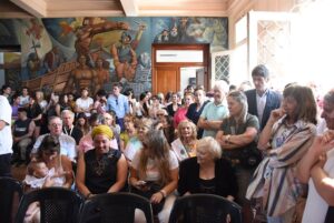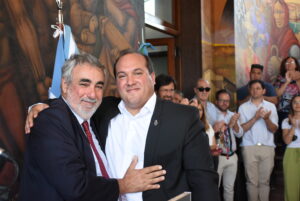 El acto protocolar continuó en el hall del Palacio Municipal y fue encabezado por Miguel Fernández y Francisco Recoulat, entre un auditorio que contó con la participación del diputado provincial Valentín Miranda; el presidente del Concejo Deliberante, Alberto Rodríguez Mera, y concejales; y el presidente del Consejo Escolar, David Siles Torrico, y consejeros escolares.