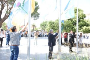 Como parte del acto en la Plaza, se entonaron las estrofas del Himno Nacional Argentino, que fue interpretado por la cálida voz de Milagro Barbas en un momento muy especial para toda la comunidad.