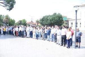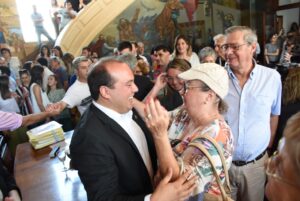 “Mi compromiso con los cuatro años próximos es trabajar incansablemente, dejar todo en la cancha para poder tener el mejor distrito posible, la realidad de cada vecino/a de cada localidad tiene la misma prioridad, venimos a plasmar y sostener una visión federal del desarrollo del distrito”, señaló en una parte significativa de su primer discurso como intendente Francisco Recoulat, quien agradeció el acompañamiento de los vecinos/as que se acercaron a la Plaza y que después colmaron el hall del Palacio Municipal donde pudieron saludar al intendente saliente y entrante.