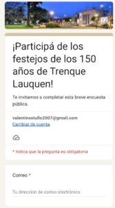 Los interesados en acercar propuestas para los festejos por el 150º aniversario de Trenque Lauquen pueden participar completando el formulario en el siguiente Link: https://docs.google.com/forms/d/e/1FAIpQLSehXYmo7V7zDRp-KPhEbm9Eb5foFspRq_6kHLflTzKmZj6bSw/viewform
