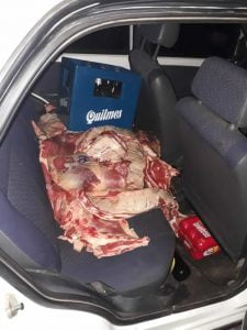 Además se incautó el vehículo en el que iban los delincuentes que tenía en el asiento trasero una importante cantidad de cortes de carne vacuna y bebidas alcohólicas, que habían sido sustraídas del comercio.