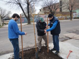 En este marco, desde el área a cargo de Germana Cuniberti explicaron que “en la sucursal de Simini y Di Gerónimo la empresa tuvo que realizar un trabajo adicional de modificación de la vereda, para cumplir con las especificaciones técnicas de plantación en relación a la distancia forestal que requiere esta especie y de tamaño de cazuela (cantero) que se necesita para q la planta pueda desarrollarse en óptimas condiciones”.