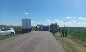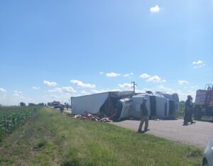 Se trata de un “camión Mercedes con semi remolque de transporte de alimentos en frío volcado en su totalidad del lado derecho”, aseguraron los voceros consultados.