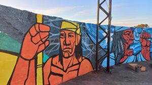 Una vez finalizado el trabajo, Villamor señaló que se trabajó con la temática del pueblo Mapuche. “En el mural se pueden apreciar las figuras del Cacique Pincén y del Lonko Lorenzo Cejas Pincén, además de simbologías propias de la cultura Mapuche como el puma, la serpiente y la machi con su cultrún”, subrayó.
