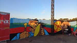En el marco de la obra de revalorización del Parque Municipal que se viene llevando adelante, el muralista Lucas Quinto, de La Matanza, y un grupo de artistas locales pintaron en el escenario del Anfiteatro Cacique Pincén un mural que rescata la identidad originaria.