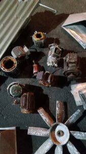 Se incautó en el lugar 74 placas de aluminio, 5 ventiladores, 7 motores bobinados de cobre y un cajón con herramientas, varias como llaves de tubo, pinzas pico de loro, martillo, destornillador, tenazas, entre otros elementos.